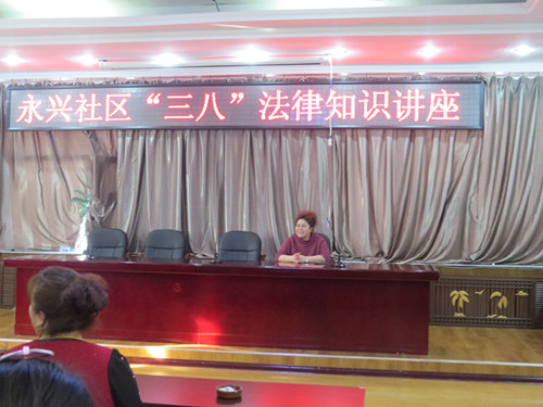 为更好的关注妇女健康、维护妇女权益,提高妇女的维权意识和自我保护能力,近日,永兴社区在四楼多功能室举办庆“三八”妇女节法律知识讲座。社区干部、网格长、妇女代表共计六十余人参加此次活动。